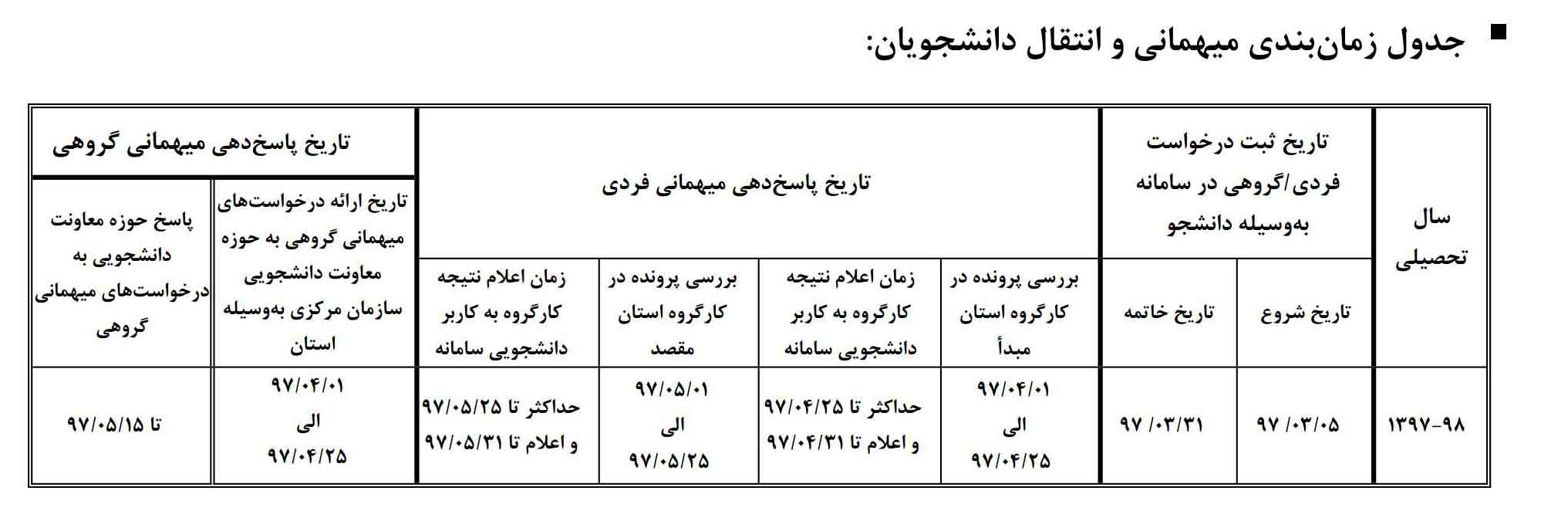 زمانبندی نقل و انتقال دانشجویان در سال 1397-1398