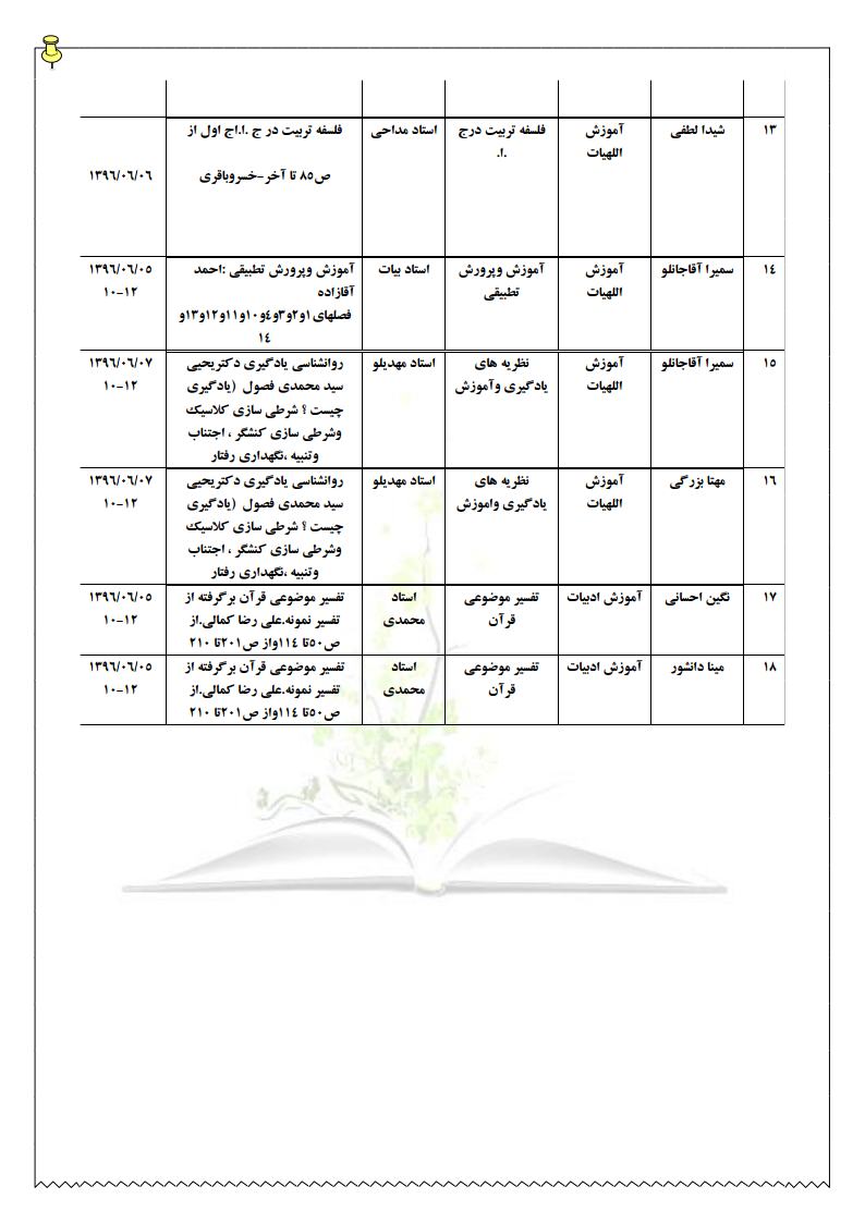 منابع درسی و تاریخ امتحان دروس معرفی به استاد