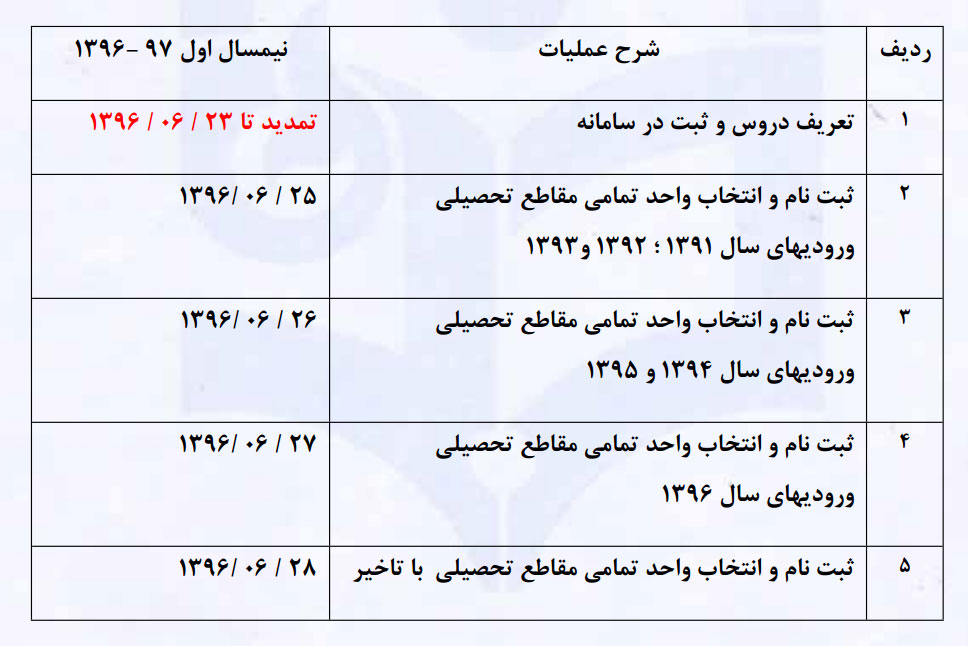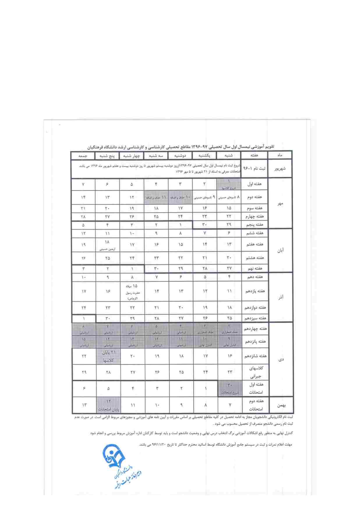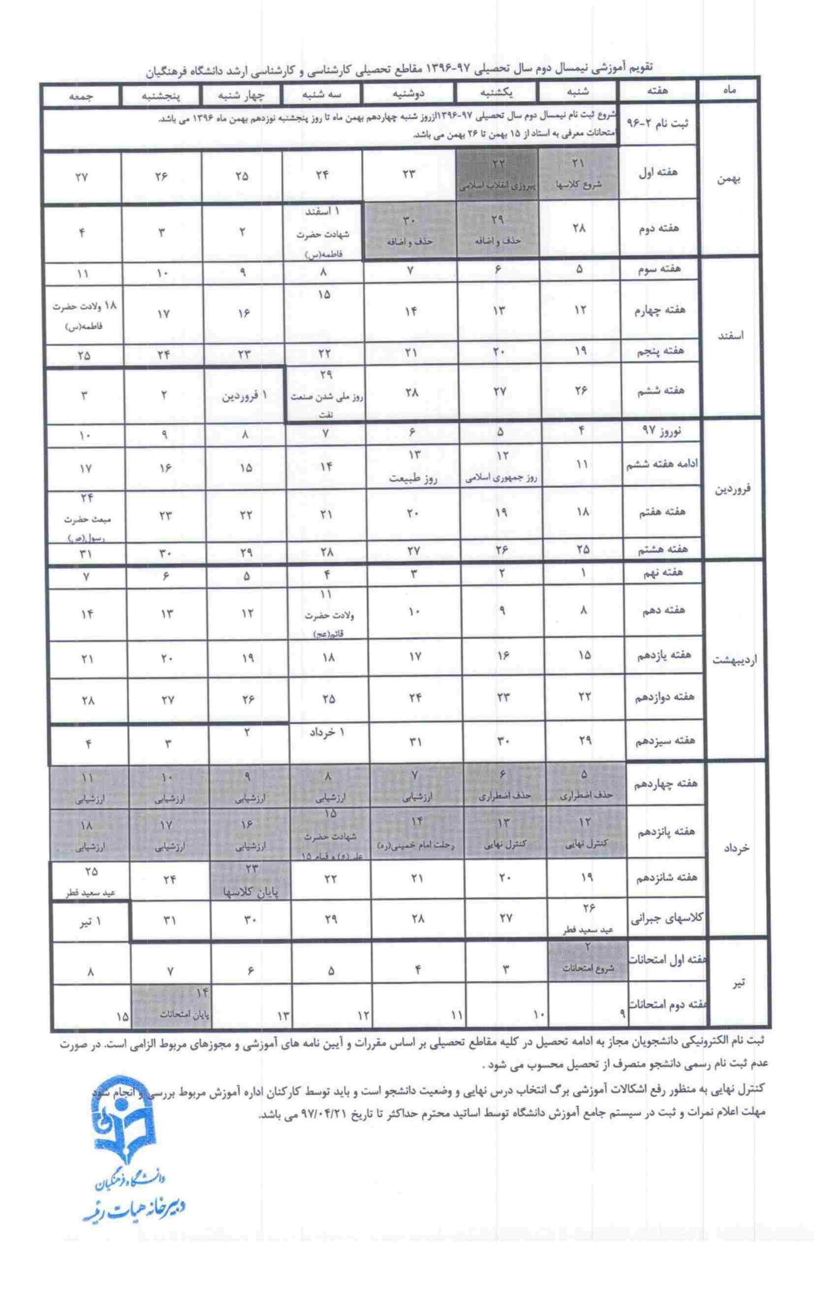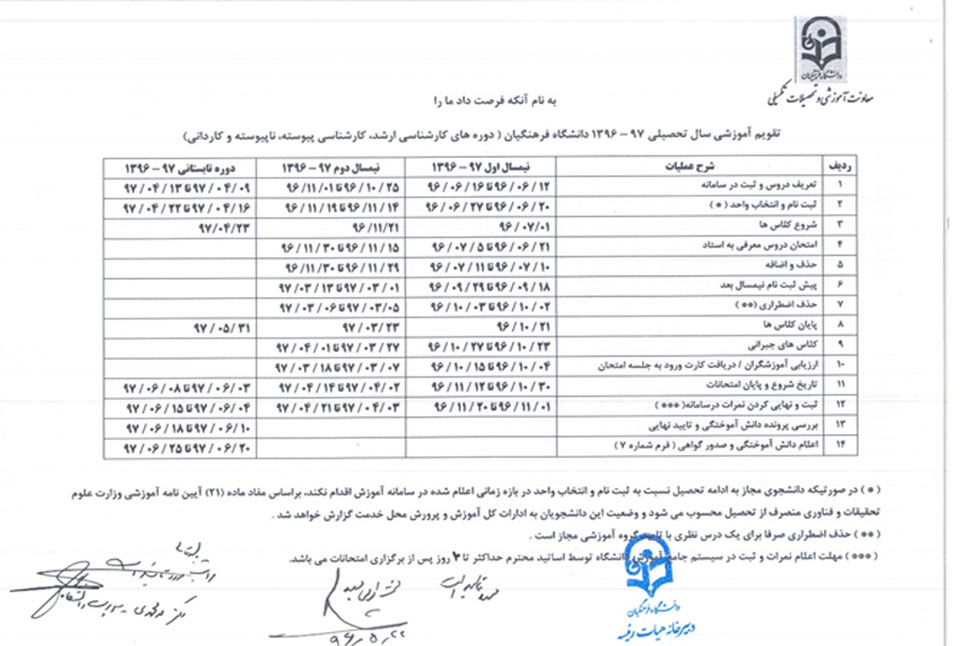 تقویم آموزشی سال تحصیلی 97-96 دانشگاه فرهنگیان