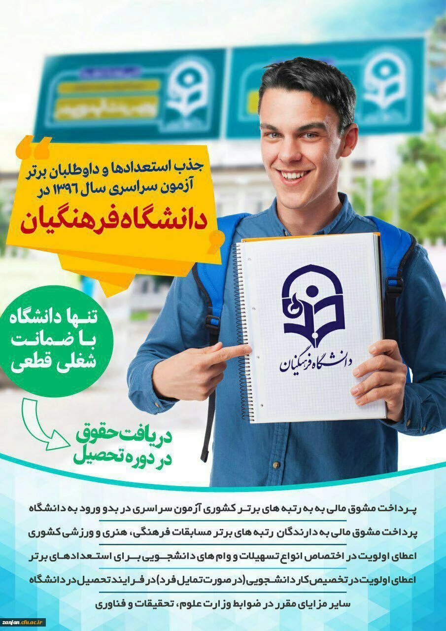 سازمان مرکزی دانشگاه فرهنگیان اعلام کرد: اعطای مشوق های مالی جهت جذب داوطلبان برتر کنکور سراسری 2