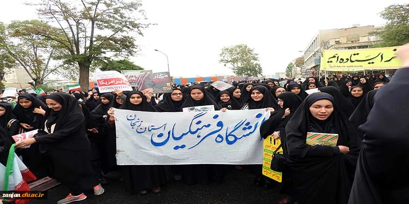 شرکت دانشجومعلمان وهمکاران همگام با مردم غیور زنجان در راهپیمایی 13 آبان  2