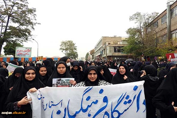 شرکت دانشجومعلمان وهمکاران همگام با مردم غیور زنجان در راهپیمایی 13 آبان  2