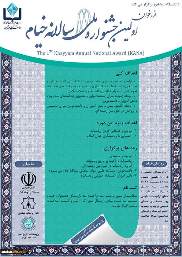 امتیاز دهید : دانشگاه نیشابور برگزار می کند: فراخوان اولین جشنواره ملی سالانه خیام 2 شنبه 18 فروردین 1397 ساعت 8:58