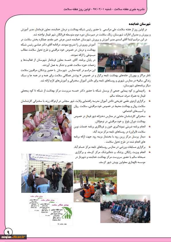 امتیاز دهید : به مناسبت هفته بهداشت و سلامت منتشر شد: نشریه خبری هفته سلامت 10 دوشنبه 3 اردیبهشت 1397 ساعت 8:15