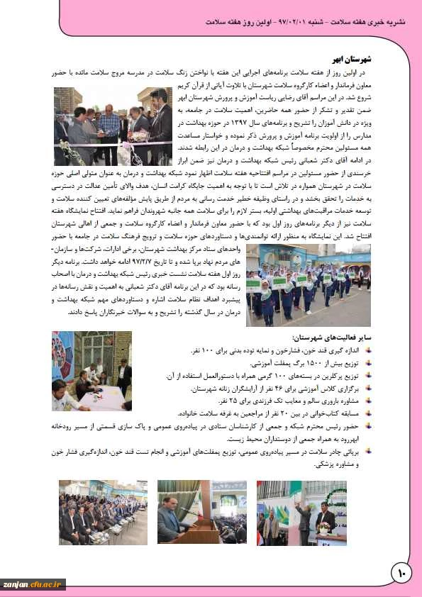 امتیاز دهید : به مناسبت هفته بهداشت و سلامت منتشر شد: نشریه خبری هفته سلامت 11 دوشنبه 3 اردیبهشت 1397 ساعت 8:15