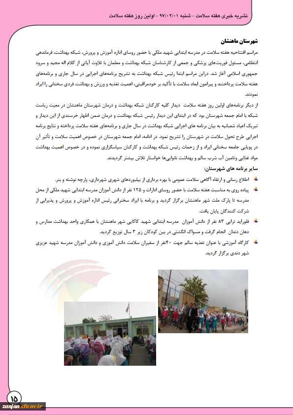 امتیاز دهید : به مناسبت هفته بهداشت و سلامت منتشر شد: نشریه خبری هفته سلامت 16 دوشنبه 3 اردیبهشت 1397 ساعت 8:15