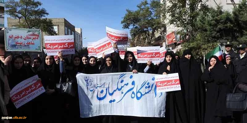 همزمان با مردم سراسر کشور: حضور گسترده اعضاء هیات علمی ،کارکنان ودانشجویان پردیس الزهرا(س) در راهپیمایی 13آبان 2