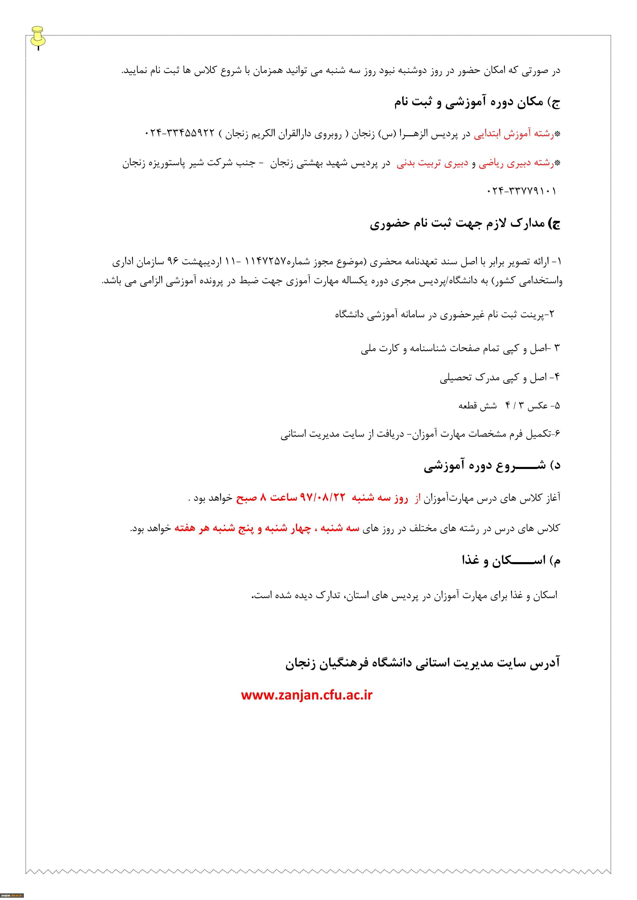 قابل توجه مهارت آموزان (ماده 28 ) استخدام پیمانی ورودی 97 : زمان و مکان ثبت نام حضوری و غیر حضوری و زمان تشکیل کلاس های درس 2