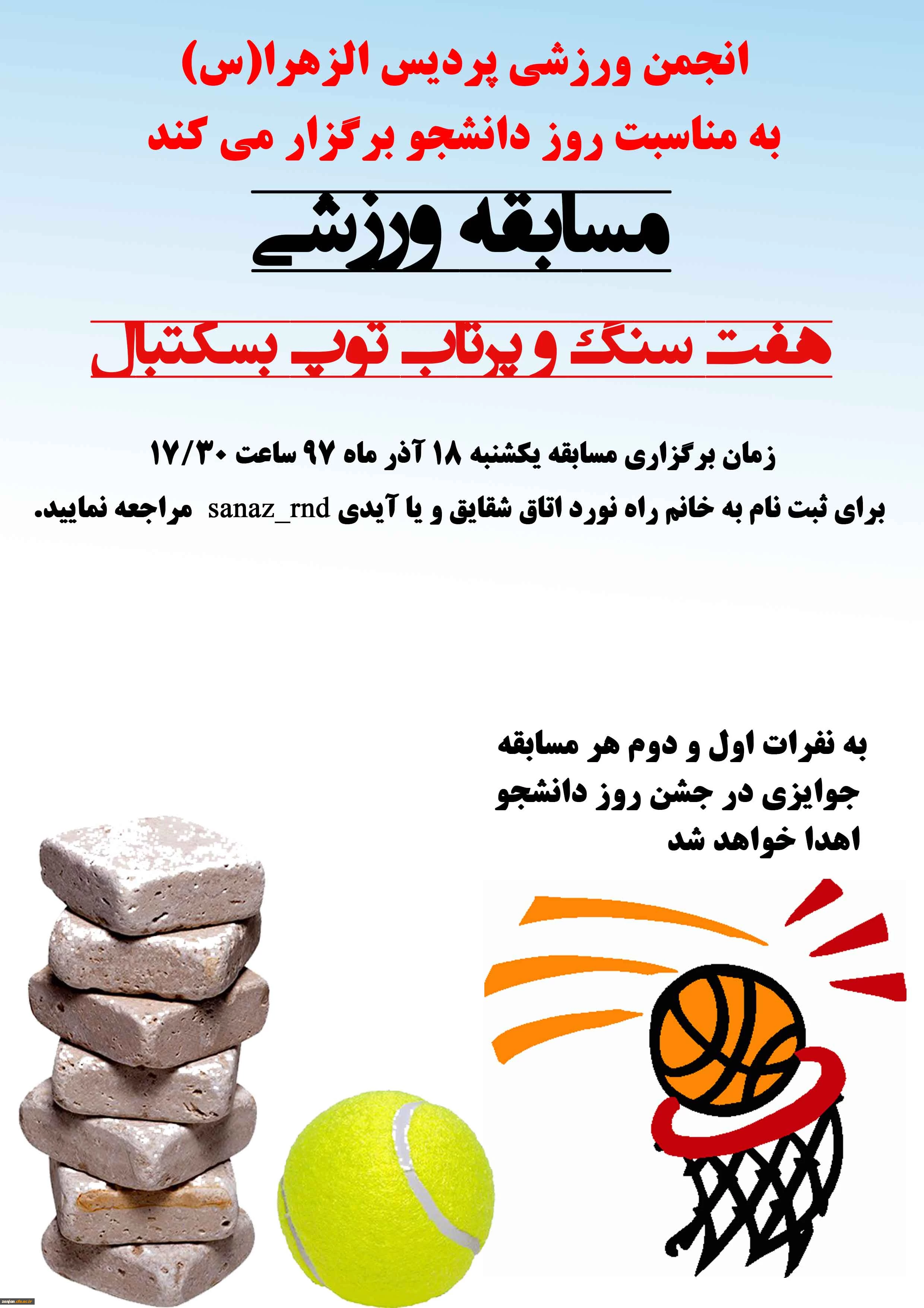 انجمن ورزشی پردیس الزهرا(س) برگزار می کند: مسابقه پرتاب توپ بسکتبال و هفت سنگ 2
