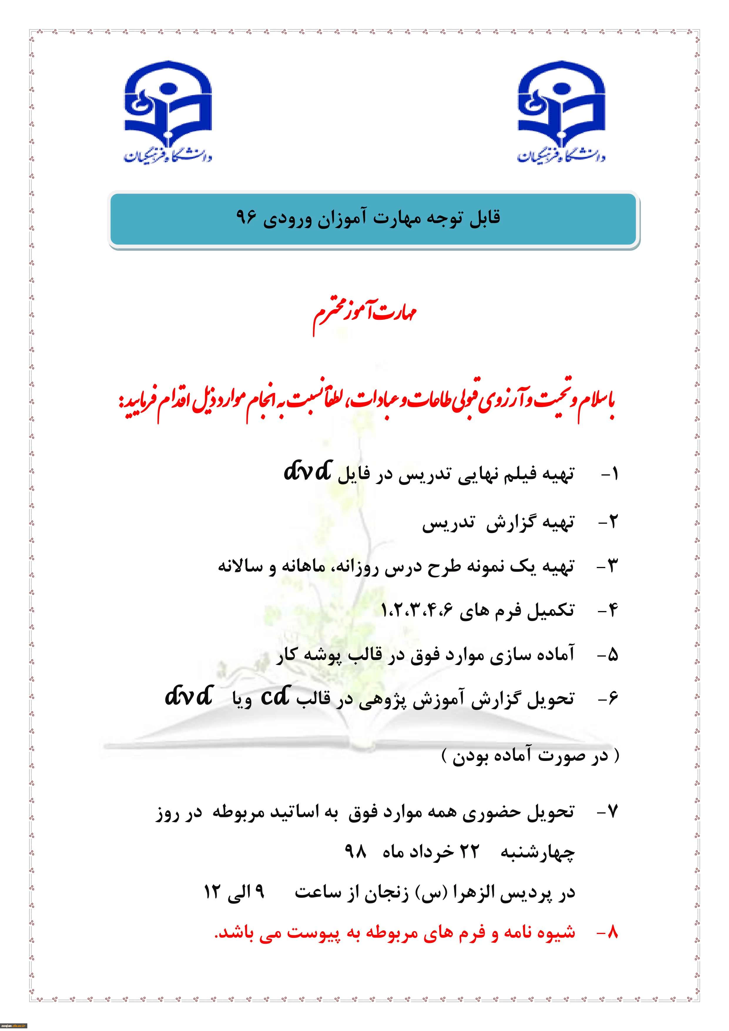 قابل توجه مهارت آموزان ورودی 96 سهمیه استان زنجان : تحویل فرم های درس کارآموزی و گزارش آموزش پژوهی به استاد دروس مربوطه 2