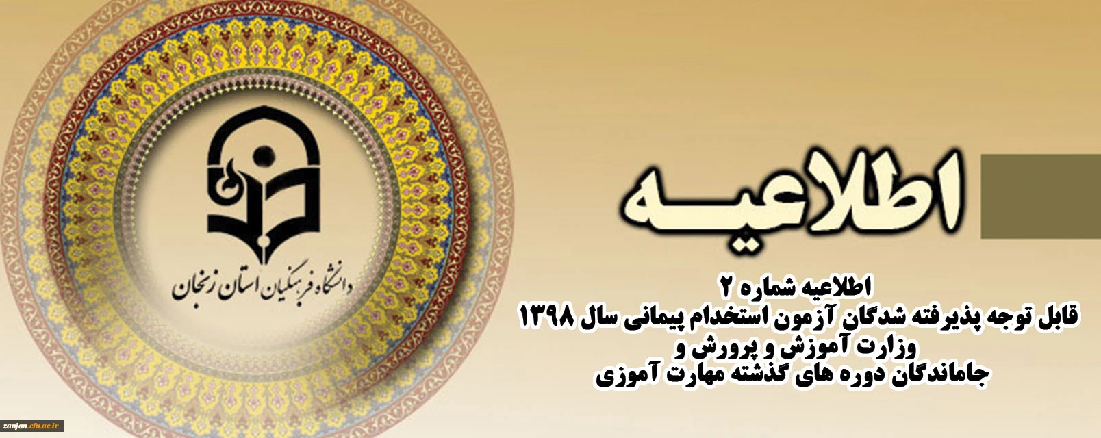 قابل توجه پذیرفته شدگان آزمون استخدام پیمانی سال 1398 وزارت آموزش و پرورش و جاماندگان دوره های گذشته مهارت آموزی 2