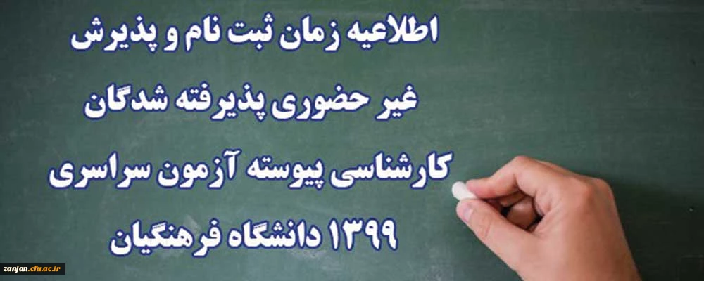 اطلاعیه زمان ثبت نام و پذیرش غیر حضوری پذیرفته شدگان کارشناسی پیوسته آزمون سراسری 1399 دانشگاه فرهنگیان 2