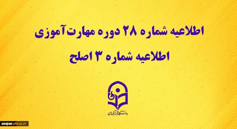 امتیاز دهید : اطلاعیه شماره 28 دوره مهارت آموزی، اطلاعیه شماره 3 اصلح 2 دوشنبه 17 آذر 1399 ساعت 21:28
