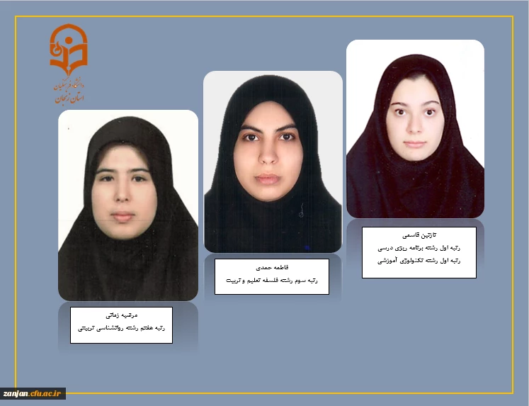 افتخارآفرینی نو معلم و دانشجو معلمان دانشگاه فرهنگیان استان زنجان در کسب رتبه های برتر کنکور کارشناسی ارشد 2