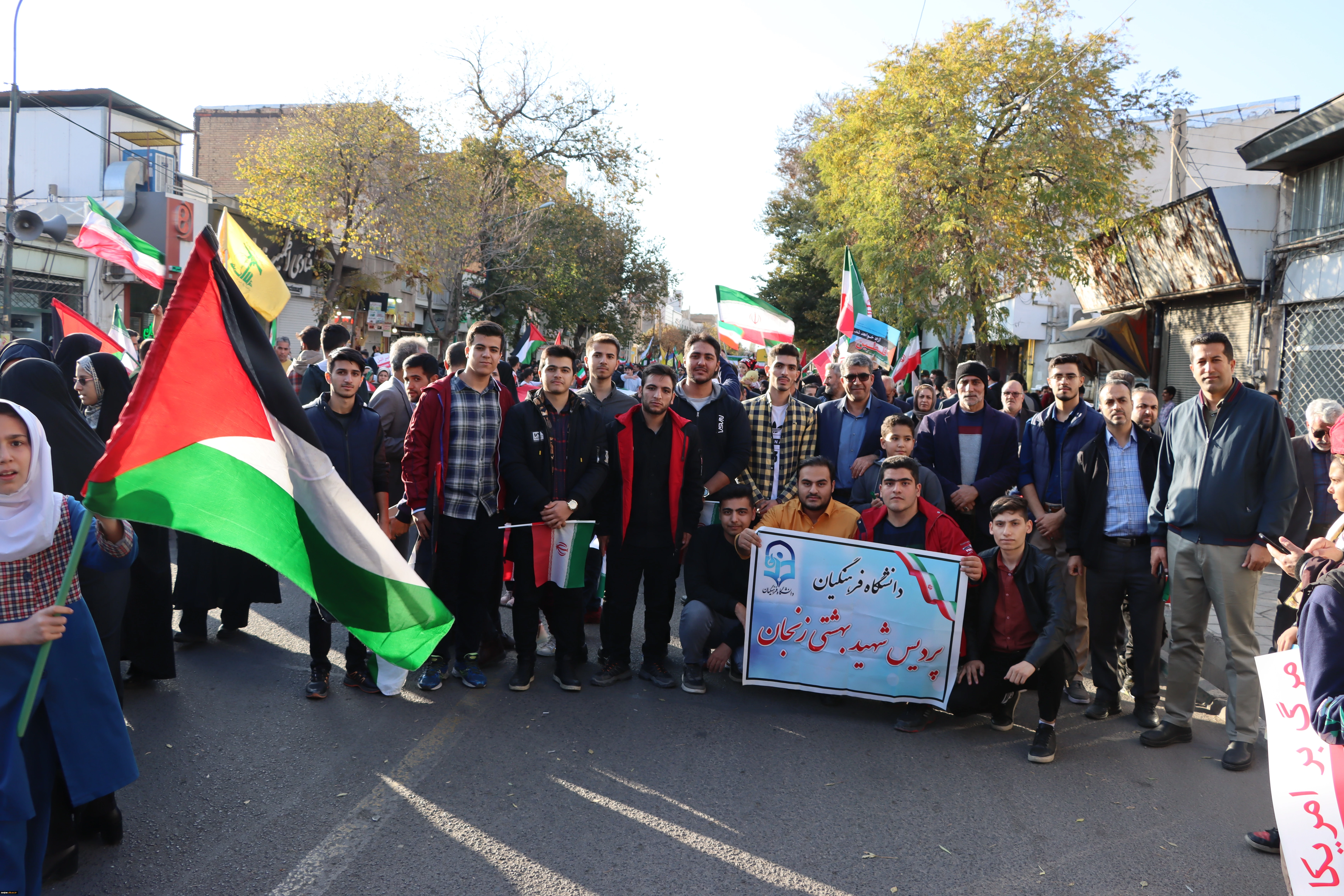 حضور پرشور اساتید،کارکنان و دانشجو معلمان دانشگاه فرهنگیان استان زنجان پردیس شهید بهشتی در تجمع حمایت از مردم فلسطین 3