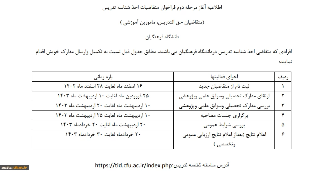 امتیاز دهید : اطلاعیه آغاز مرحله دوم فراخوان متقاضیان اخذ شناسه تدریس دانشگاه فرهنگیان 2 سهشنبه 29 اسفند 1402 ساعت 12:37