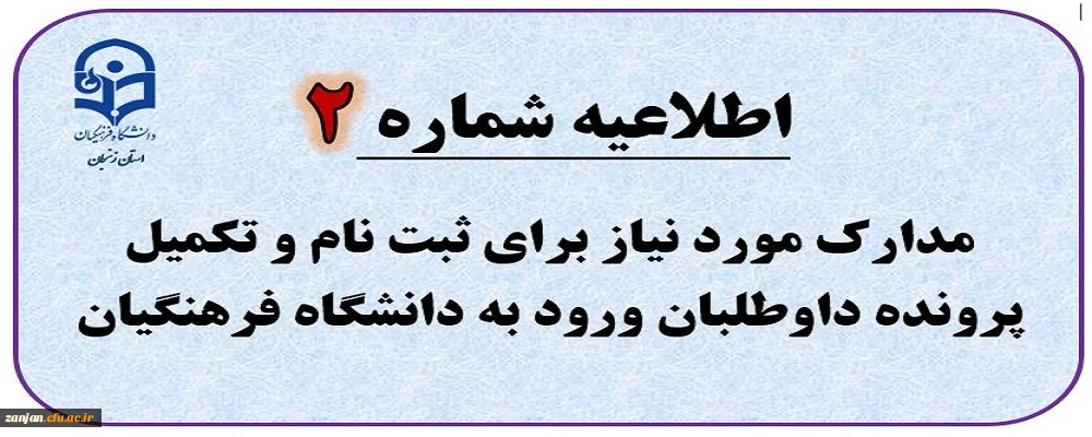 اطلاعیه شماره 2 - مدارک مورد نیاز برای ثبت نام و تکمیل پرونده داوطلبان ورود به دانشگاه فرهنگیان 2