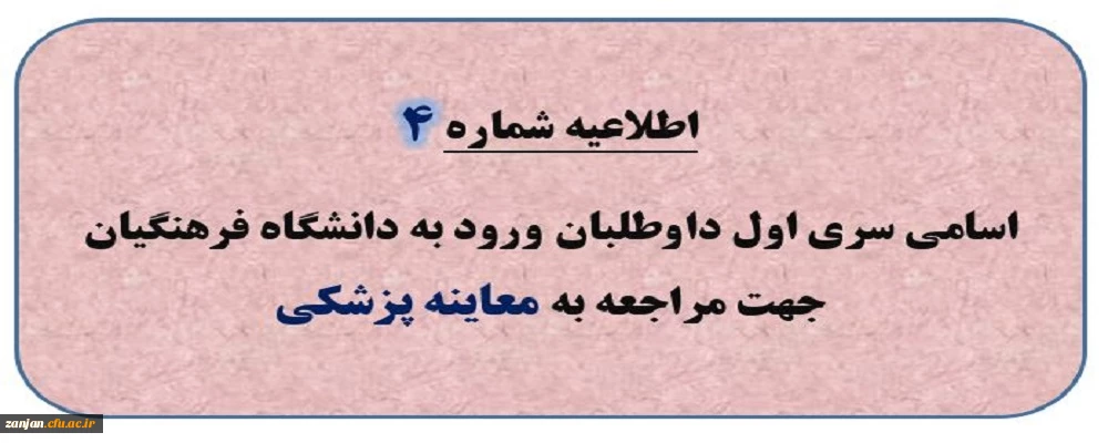 اطلاعیه شماره 4: اسامی سری اول داوطلبان ورود به دانشگاه فرهنگیان جهت مراجعه به معاینه پزشکی 2