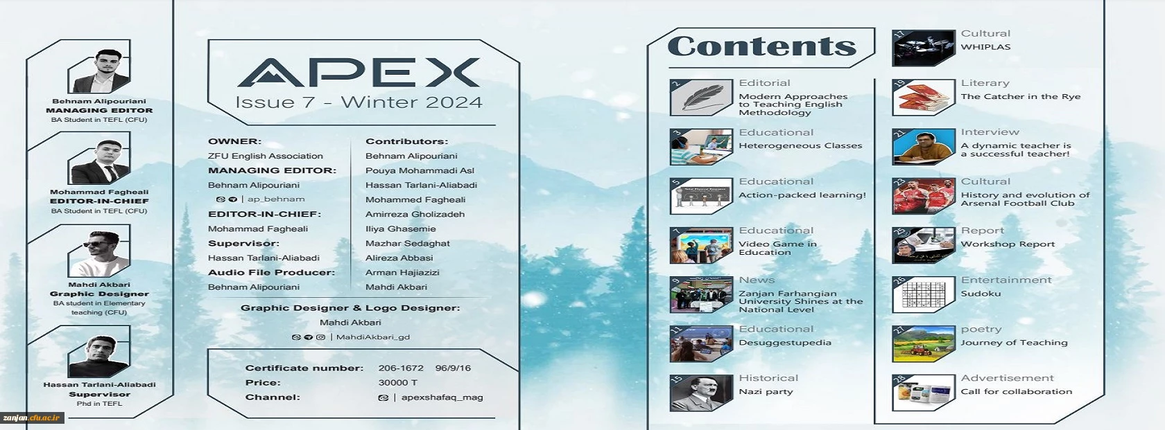 افتخار آفرینی نشریه دانشجویی Apex انجمن علمی زبان انگلیسی پردیس شهید بهشتی در مرحله کشوری جشنواره های دانشجویی 2