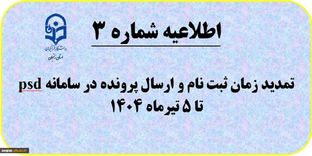 امتیاز دهید : اطلاعیه شماره (7) تمدید زمان ثبت نام و ارسال پرونده داوطلبان آزمون سراسری 2 چهارشنبه 4 تیر 1404 ساعت 23:27