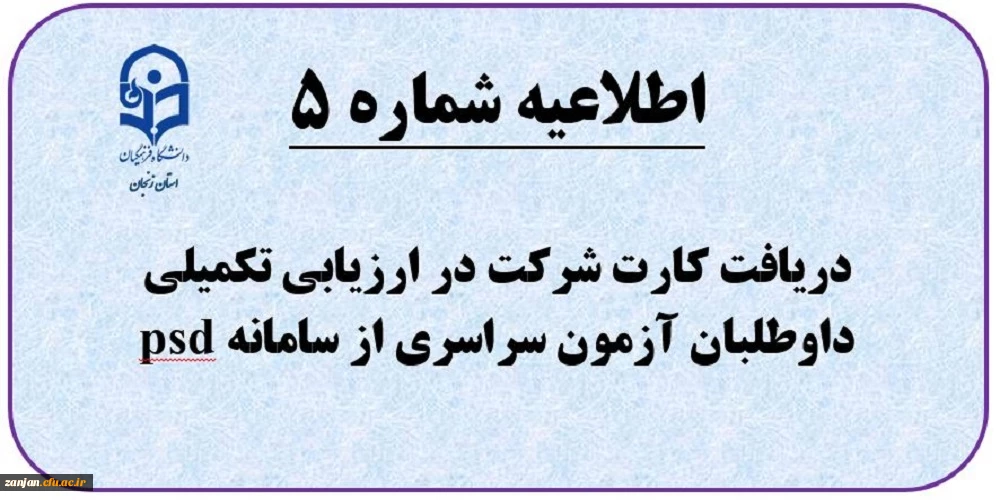اطلاعیه شماره (5) دریافت کارت ورود به ارزیابی تکمیلی داوطلبان چند برابر ظرفیت جذب و پذیرش دانشجومعلم متعهد خدمت به وزارت آموزش و پرورش 2